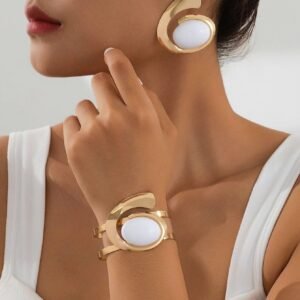 Exaggerated Geometric Trend Irregular Retro Circle Stud Earrings Bangle Women Jewelry Suit