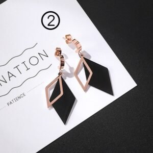 Japan and South Korea simple long tassel titanium steel earrings temperament triangle round geometric earrings