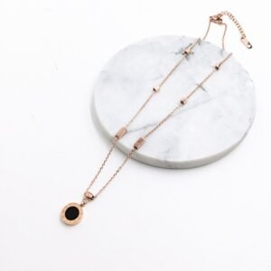 Korean fashion titanium steel plated 18K rose gold black and white double-sided Roman numerals necklace color gold clavicle chain female short chain