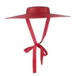 GEMVIE Black Wide Brim Flat Top Straw Hat Summer Hats For Women Ribbon Beach Boater Fashionable Sun Hat With Chin Strap