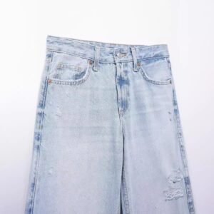 Women’s Fashion Holes Decorative Mid-waist Wide-leg Jeans