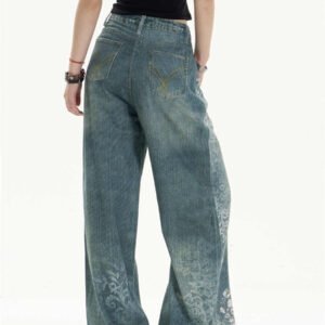Women’s Bowknot Printed Jeans Loose Wide-leg Pants