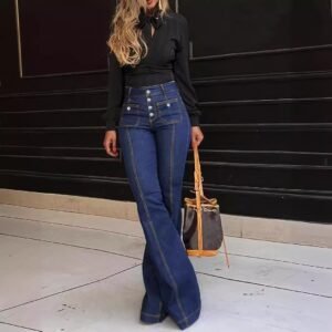 Women’s High Waist Flared Jeans – Slimming Wide Leg Elastic Denim Pants