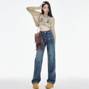 Women’s Printed Denim Wide-Leg Pants – Spring & Autumn Style