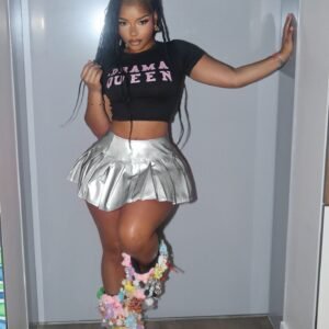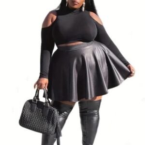 Sexy Solid Color Women’s Leather Pleated Skirt