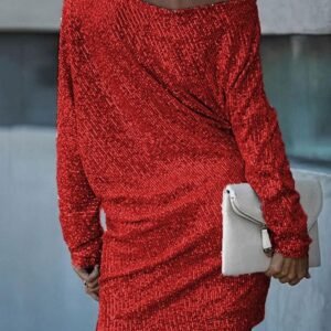 Fashion Oblique Shoulder Sequins Dress Ins Long-sleeved Dresses For Party Women’s Clothing