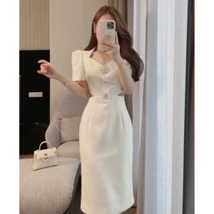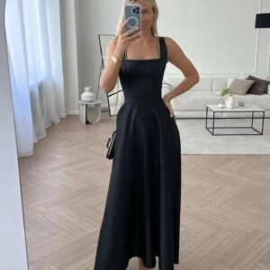 Fashion Retro Waist-controlled Square Collar Large Swing Dress