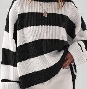 Loose Striped Sweater Fashion Casual Long Batwing Sleeve Round Neck Pullover Knit Tops Women Clothing