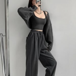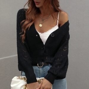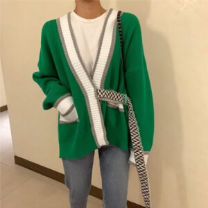 Single-Breasted Solid Color Loose Knitted Cardigan – Women’s Oversized Knitwear