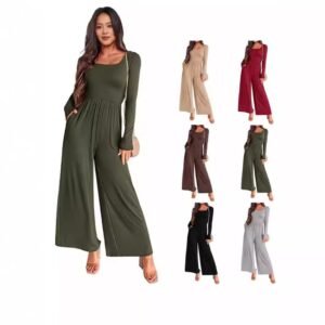Autumn And Winter Draping Solid Color Sports Long Sleeve Jumpsuit Wide-leg Pants