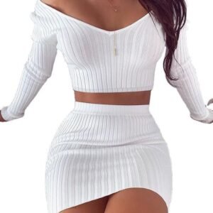 Sweater Skirt Sets for Women 2 Pieces – Elegant Knit Long Sleeve Pullover with High Waist Mini Skirt