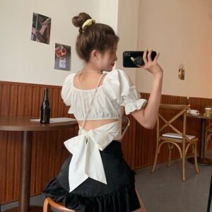 Tie-Back Bow Cropped Shirt Fishtail Skirt Two-Piece Set