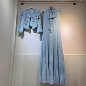 Fashion Round Neck Bowknot Flower Patchwork Pleated Skirt