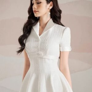 Elegant Lapel A-Style Hemline White Short Sleeve Dress
