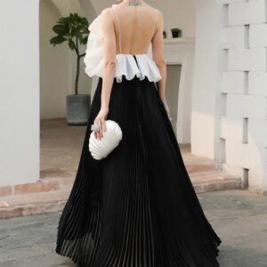 Handmade Flower Hem Dress Women’s Fashion Black And White Pressed