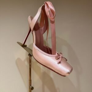 Leather Sole Women’s Ballerina High Heel Shoes Fashion Satin Ribbon Toe Cap