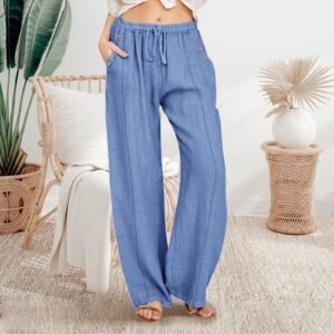 Loose Wide Leg Solid Color Casual Trousers Bottoms Trousers