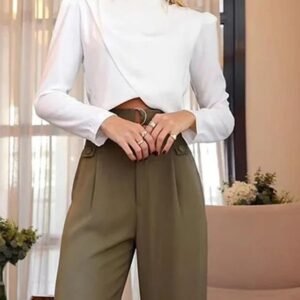 New Fashion Round Neck Temperament Long Sleeve Waist-tight Slimming Suit Pants
