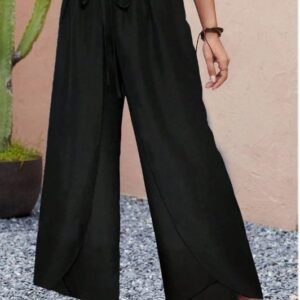Stylish Shirred Waist Wide Leg Pants – Women’s Clothing – Comfortable Vacation Style Layered Pants For Spring & Summer With Elastic Waistband And Flowy Design For A Flattering Fit