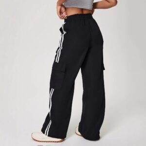 Striped Elastic Waist Drawstring Sports Loose Trousers