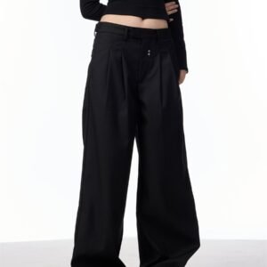 Simple Loose Double Pleated Rivet Draping Casual Suit Pants