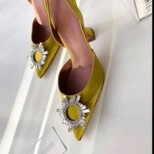 Low-cut Satin Hollow-out Pointed Toe Nightclub Metal Strap Sandals