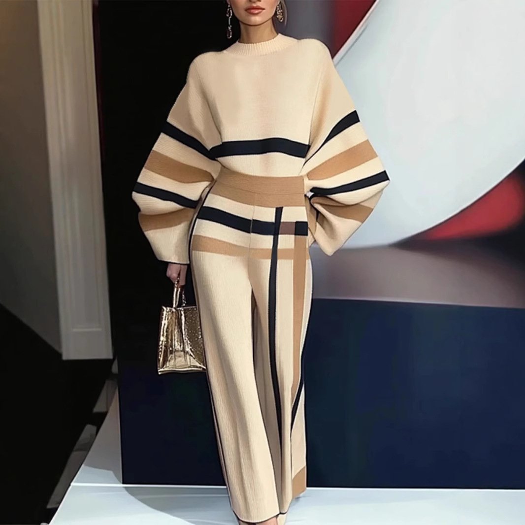 Stay trendy and comfortable with the Color Block Crew Neck Pullover and Pants Set—a chic casual outfit perfect for everyday fashion.