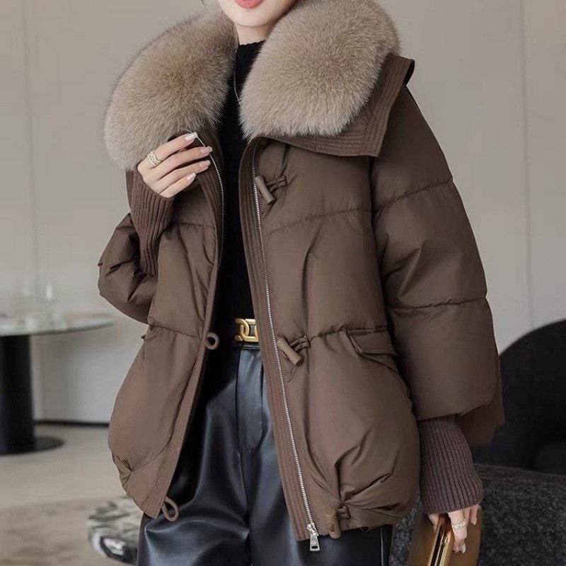 Down Cotton-padded Jacket Women’s Short Fur Collar Thickened Coat Winter Clothing