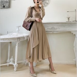 Step into sophistication with our Elegant Lapel Chain Print Long Dress, perfect for any formal or semi-formal occasion. Designed with a classic lapel collar and chic chain pattern, this dress exudes timeless elegance. The button closure and matching belt enhance your silhouette, while the practical side pockets add a modern touch. Its long sleeve design makes it suitable for year-round wear, whether you’re heading to a dinner party, office meeting, or special event. Belt & Button Closure