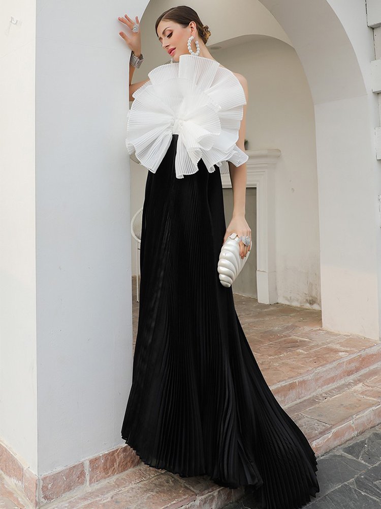 Step into timeless elegance with our Women’s Fashion Black and White Handmade Flower Hem Dress. Featuring a unique pressed fold design and exquisite handcrafted floral hem detailing, this dress is a perfect blend of artistry and sophistication.