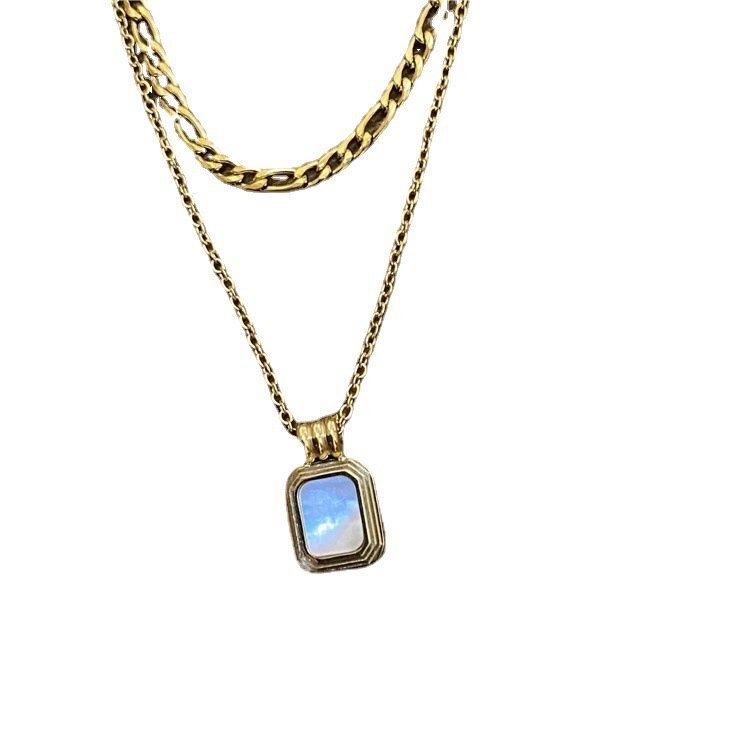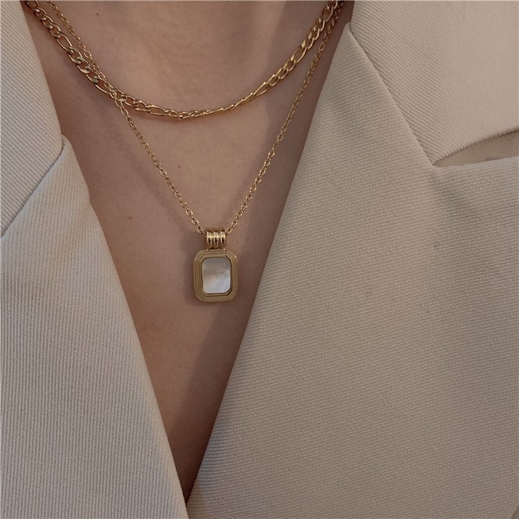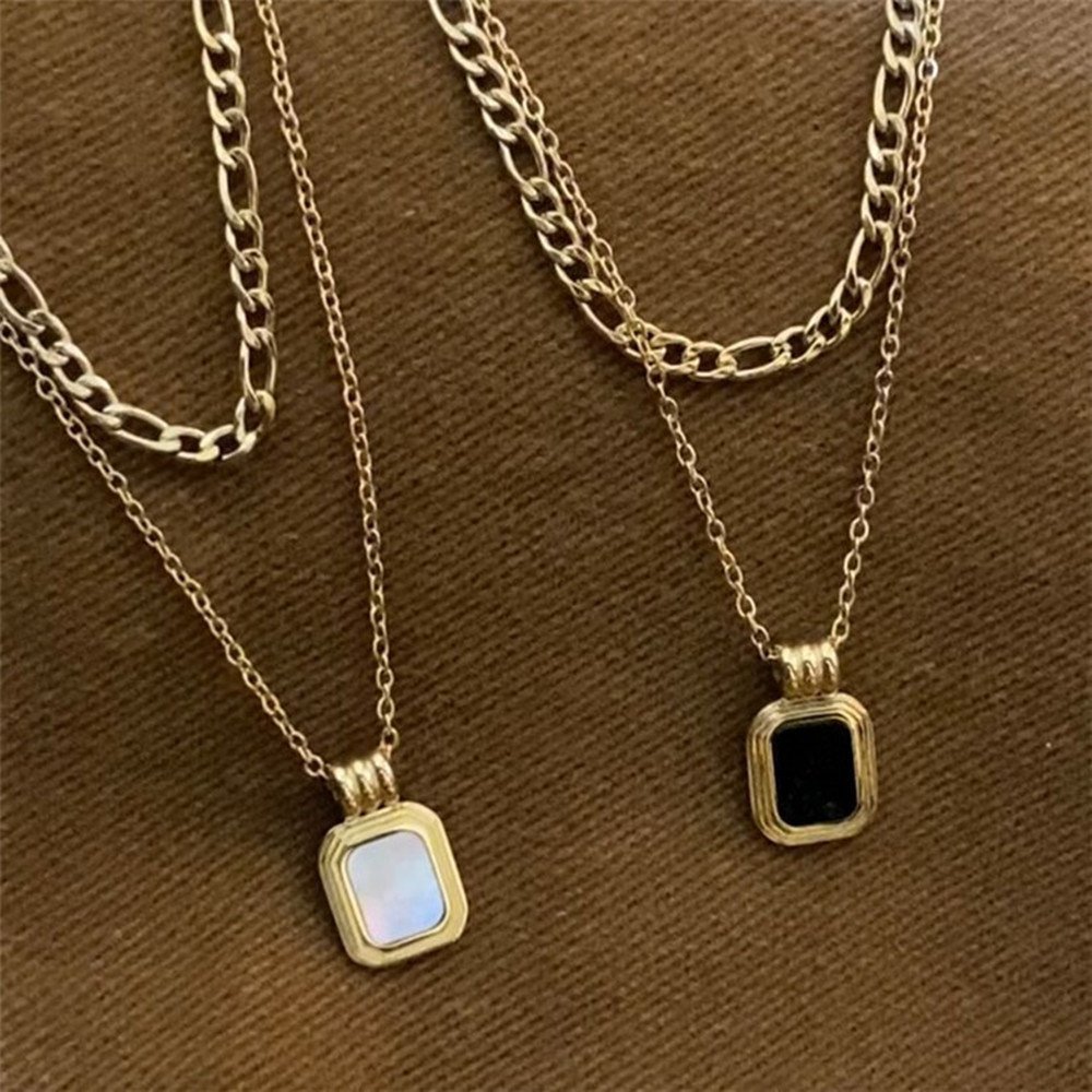 Color: White Shell Titanium Steel Necklace, Black Plate Titanium Steel Necklace