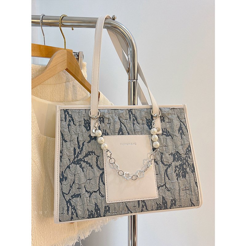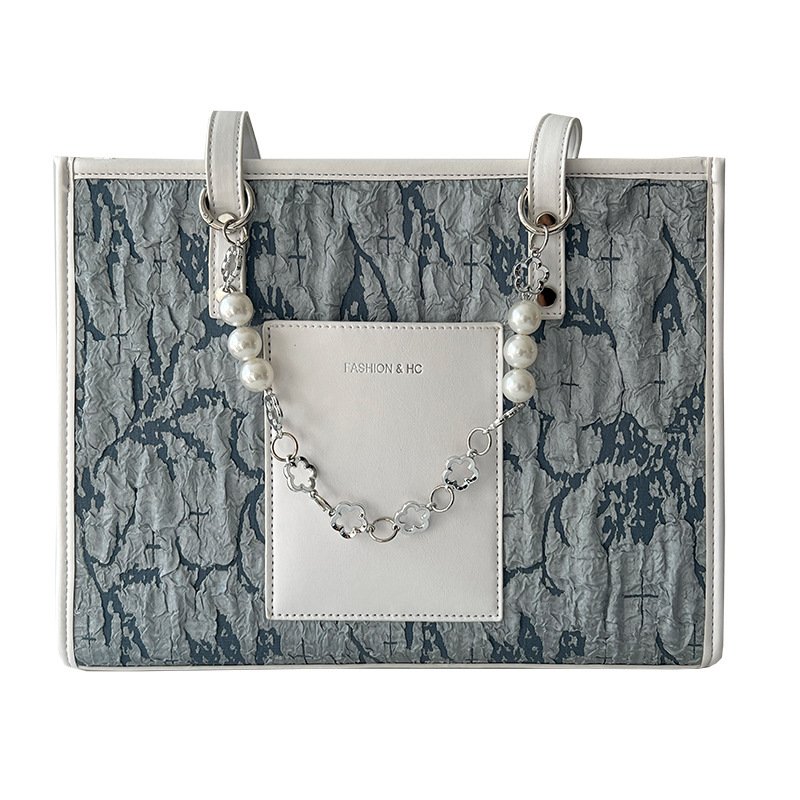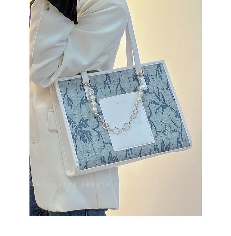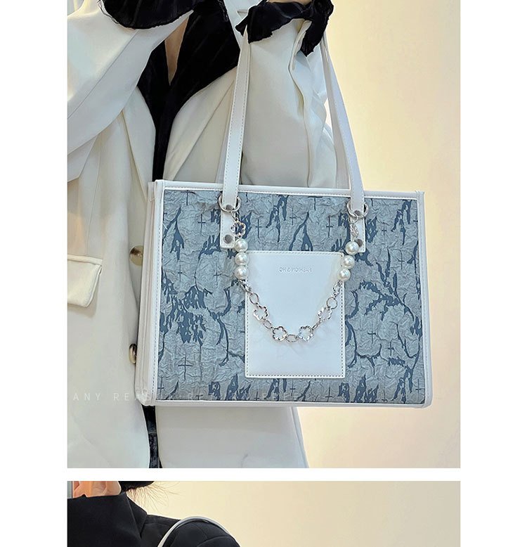 Sea Salt Blue Figured Cloth Large Capacity Commuter Tote