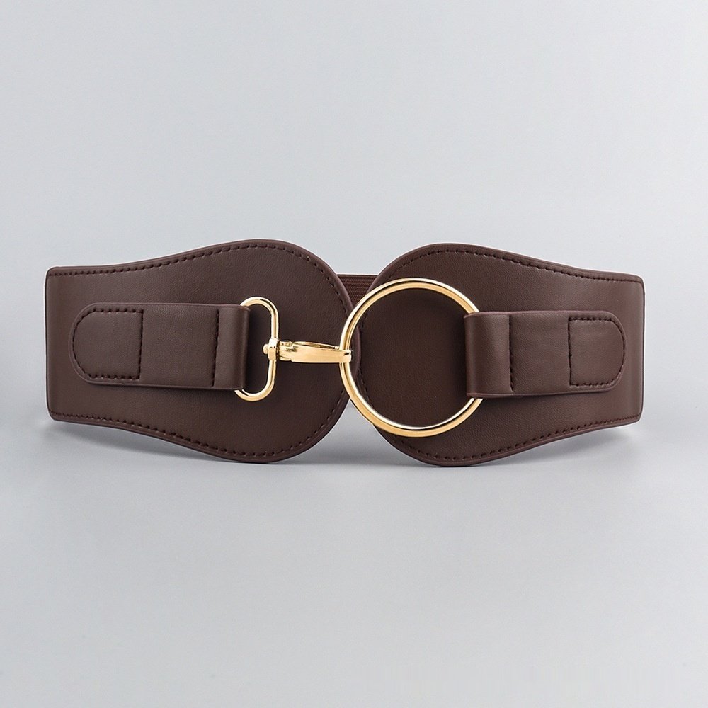 The women’s PU leather wide belt brings instant polish to any outfit. Crafted from soft yet durable PU leather, this wide belt accentuates your waist and adds a stylish finishing touch to dresses, blazers, coats, and tunics. The decorative details—subtle embellishments or a sleek buckle—give the belt its “simple, sweet, cool” character without overpowering your look.